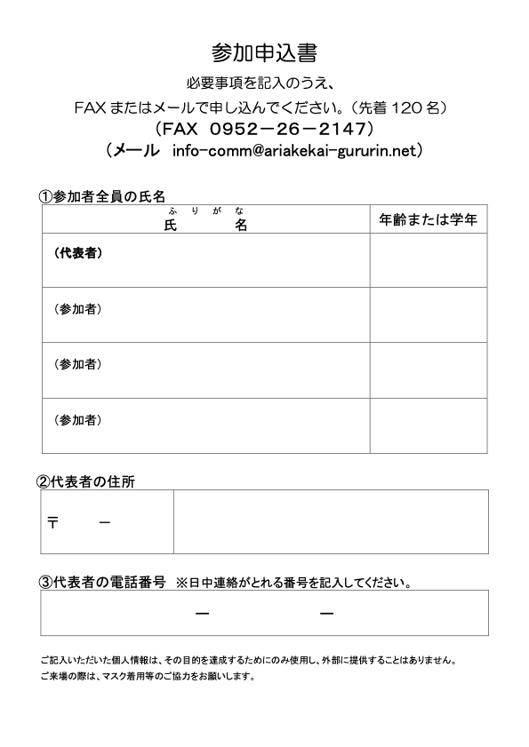 ※ 事前申し込みが必要です。参加申込書に必要事項を記入のうえ、FAXまたはメールでお申込みください。