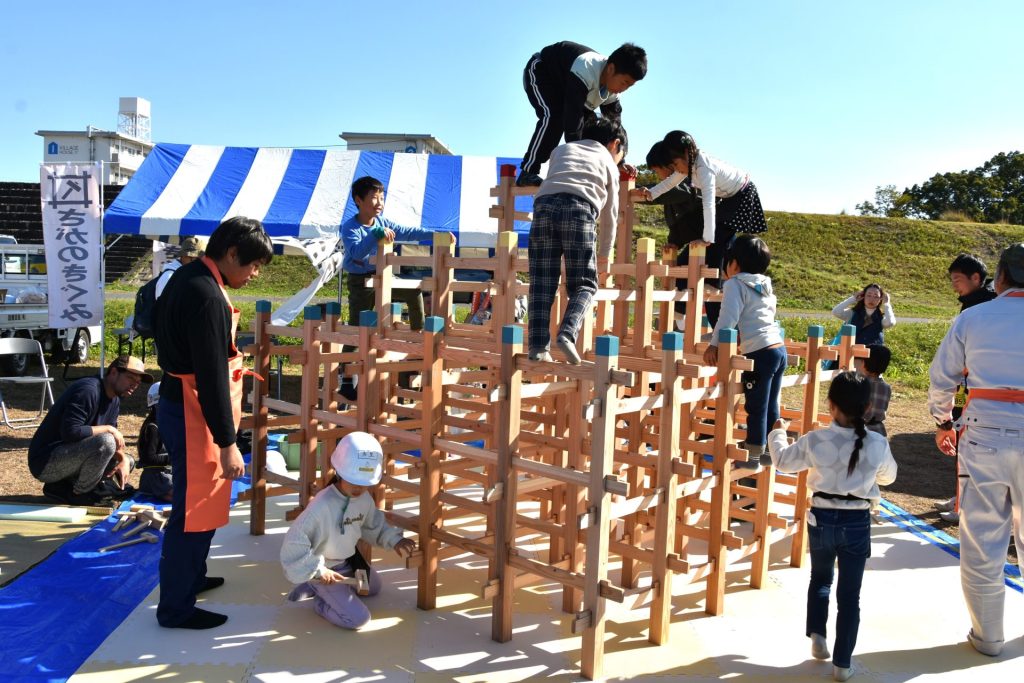 イベントでは、県産木材を使用した木工工作体験や、建築体験など木と触れ合える20ものブースが並びました。工作ブースでは、「スマホスタンドづくり」が大人気。小さな子どもでもチャレンジできる内容で、「5歳の子どもでもできた!」と親子で楽しむ姿が印象的で、体験ブースでは、木のジャングルジム「くむんだー」に子どもたちが興味津々。組み立てる動作がとても楽しかったようで、夢中になって木槌を叩き続ける可愛らしい様子が見られました。会場には笑顔があふれ、ものづくりの楽しさはもちろんのこと、木の香りや手触りも感じていただけたのではないでしょうか。