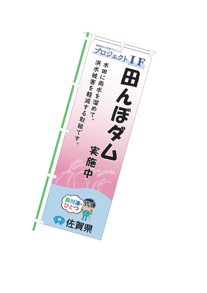 田んぼダムに取組んでいる場所には、目印ののぼり旗が立っています。