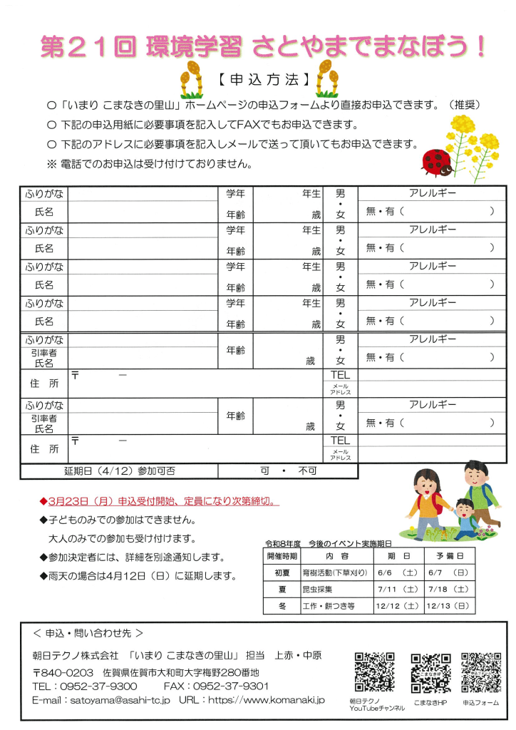 申込方法:いまりこまなきの里山HP・FAX・メール